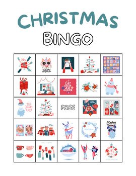 • 10 unique Bingo cards with colorful Christmas-themed icons.
